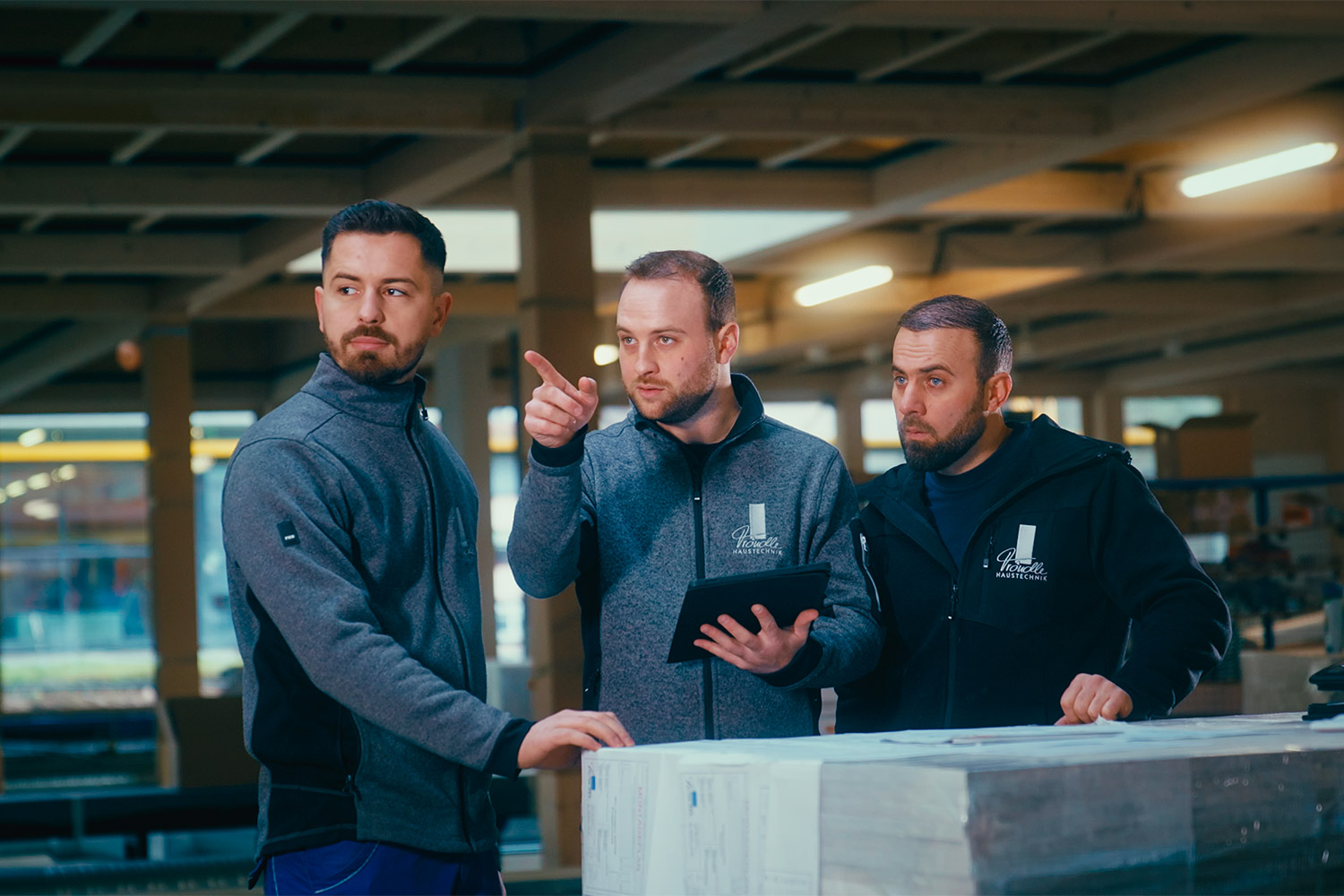 Wie möchte man sich seiner Zielgruppe präsentieren? Tröndle Haustechnik beantwortete diese Frage mit „Fachlich, seriös – aber gleichzeitig mutig und bereit für neue Herausforderungen.“ Diesen Spagat schaffen wir durch die Kombi aus klassischem Geschäftsführer-Interview mit actionreichen Schnittbildern. Das Vater-Sohn-Gespann der Geschäftsführung lichteten wir auf dem blauen Sofa (eine der Hausfarben natürlich) im Firmensitz ab. Ihr Sprechertext liefert alle relevanten Fakten zum Unternehmen – und die spannenden Schnittbilder dazu machen fühlbar, was Worte schwer vermitteln können: den Teamgeist und den motivierten Einsatz der Mitarbeitenden auf der Baustelle.